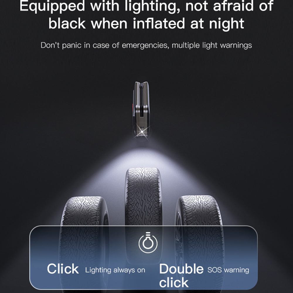 Kompakt og lett å bære, lar den deg raskt pumpe opp bildekk, sykkeldekk eller sportsballer uten behov for kabler.