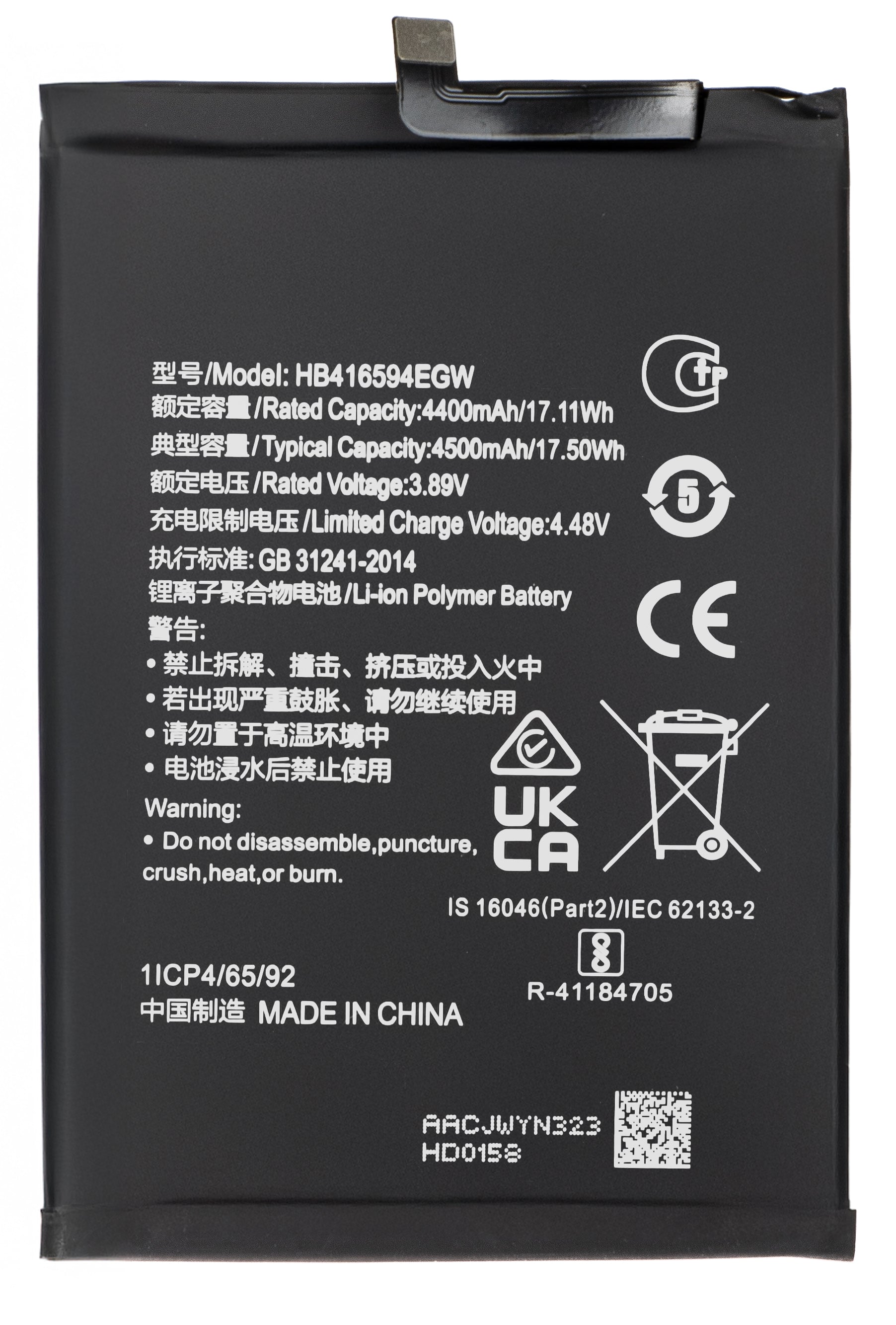 | Batterimodell | HB416594EGW |