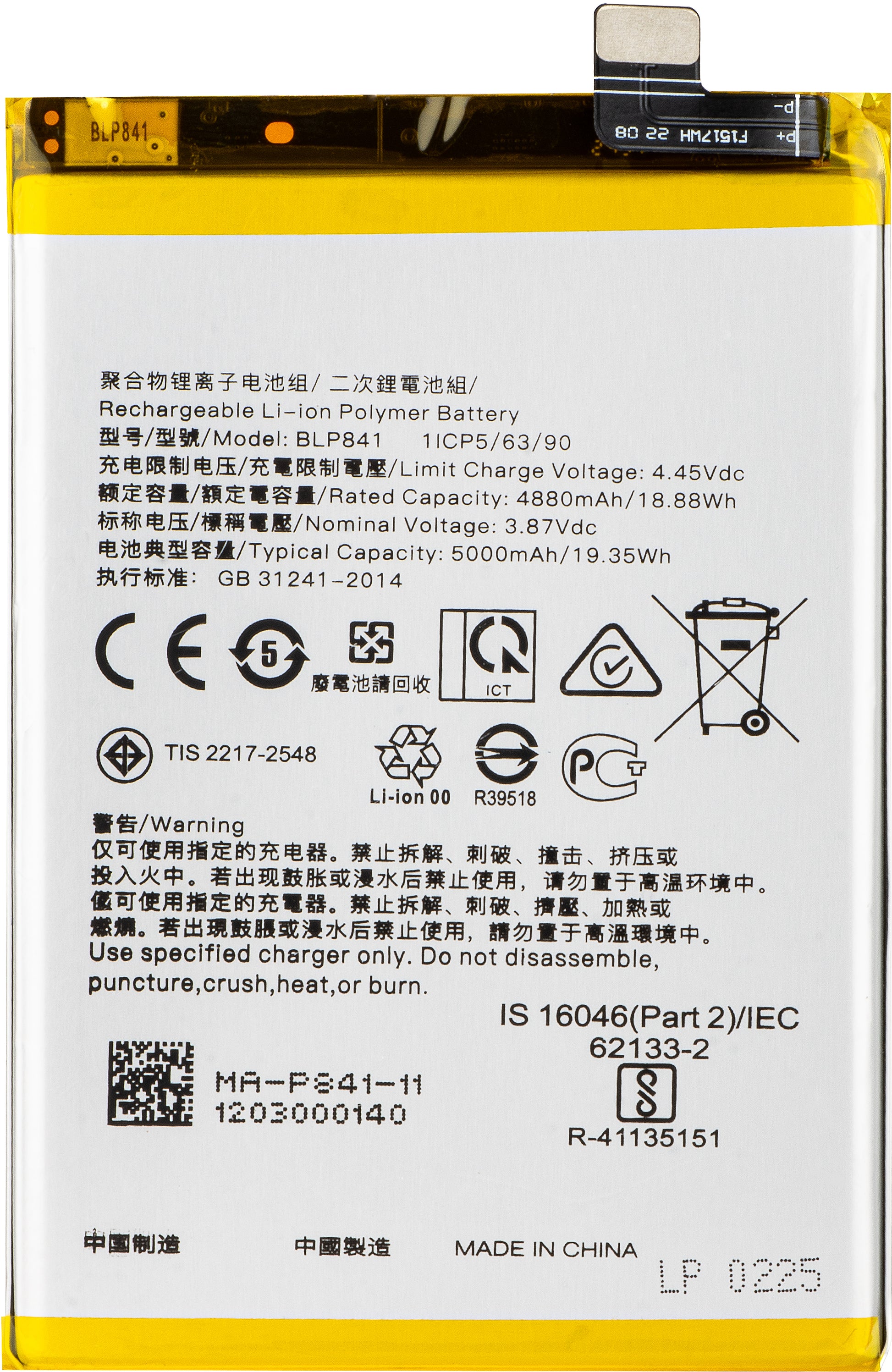 | Batterimodell | BLP841 |