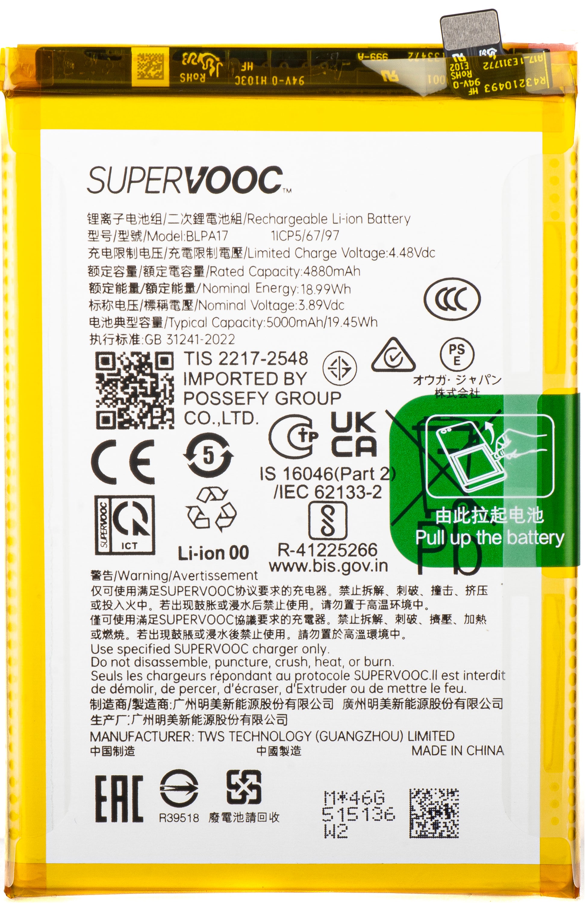 Batteri Realme C65 / C67 4G, BLPA17, Service Pack 621035000082