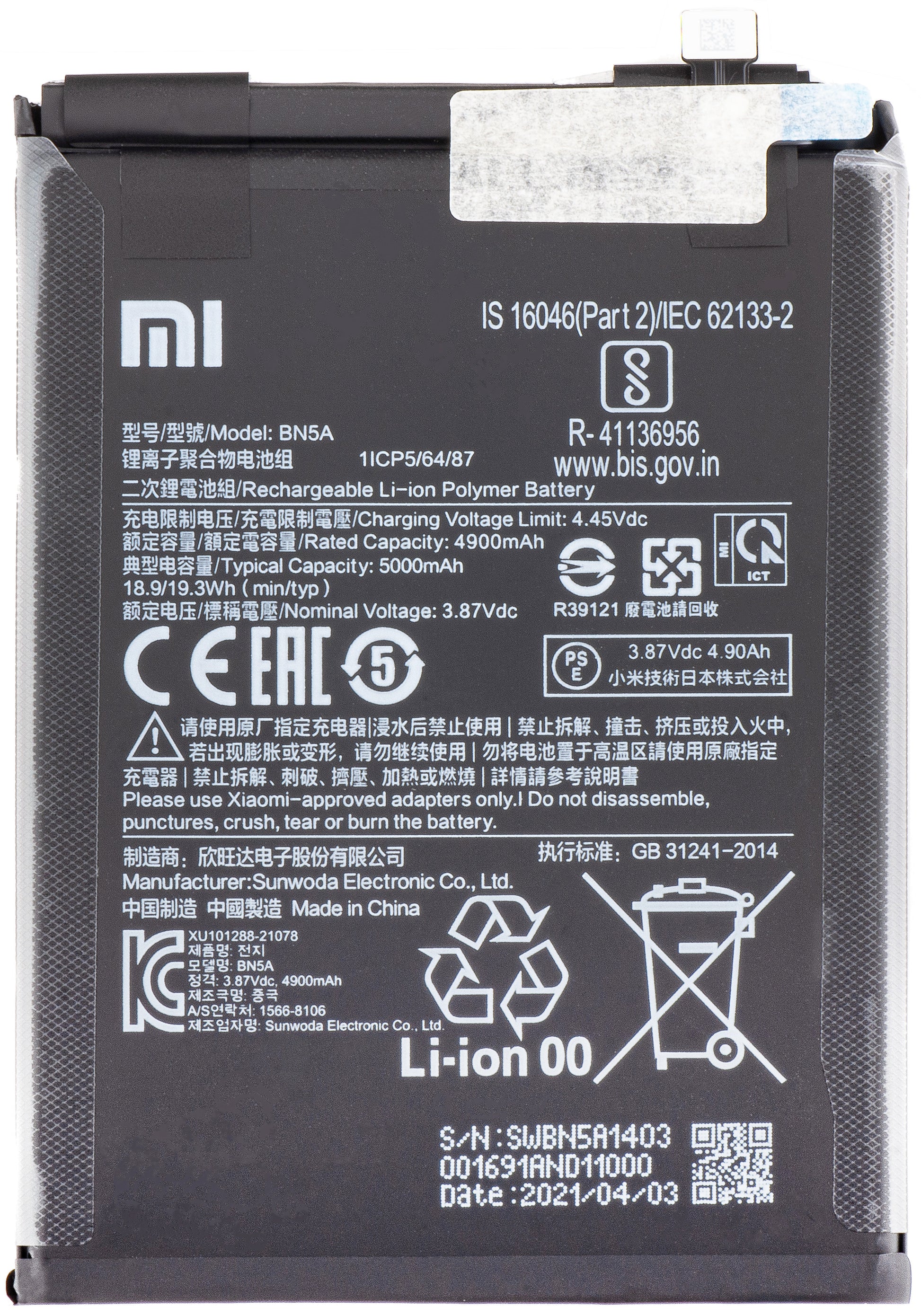 Batteri Xiaomi Redmi 10 2022 / Note 10T 5G / 10 (2021) / Note 10 5G / Poco M3 Pro 5G, BN5A, Servicepakke 460200006L55Z