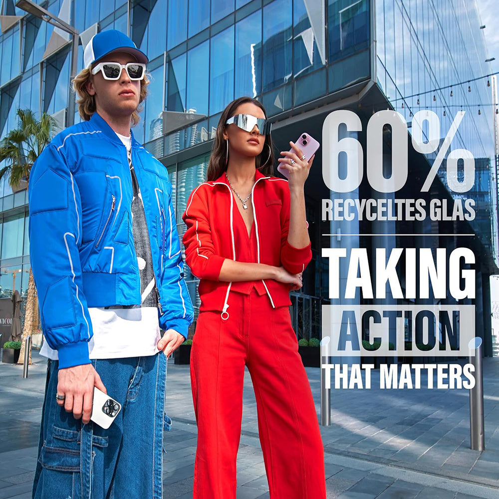 Folien er laget av omtrent 60% resirkulert glass, behandlet og renset for å opprettholde de optiske egenskapene på nivå med jomfruelig glass.