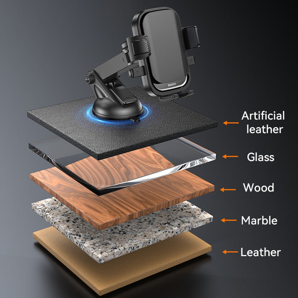 Med et gravitasjonsbasert festesystem i tre punkter og en sugekopp med sterk vedheft, holder holderen telefonen stabil, selv på de mest ujevne veier.