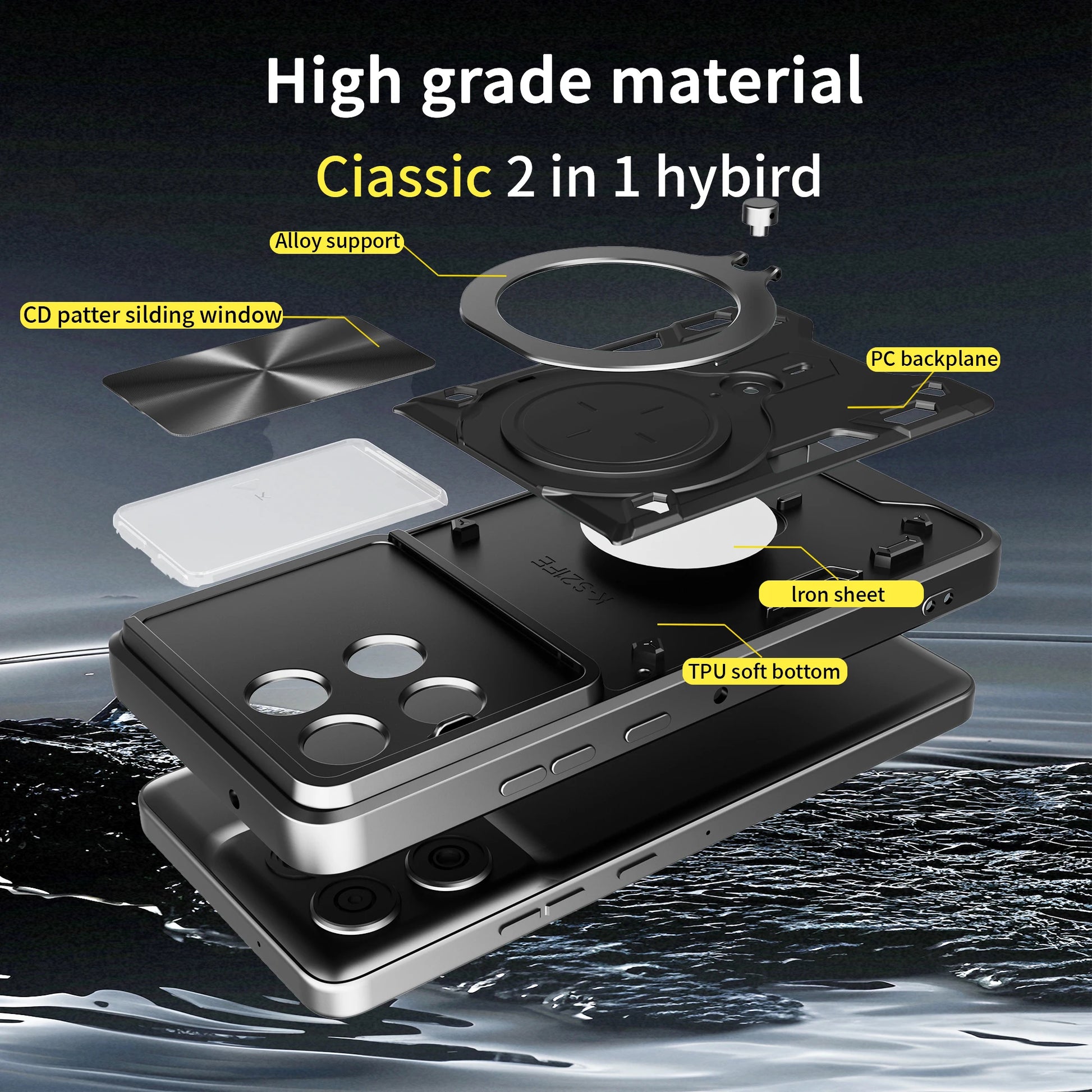 Dekselet har beskyttelse for kameraer, nøye utførte utskjæringer og en fleksibel ring for å støtte telefonen din når du ser på en serie.