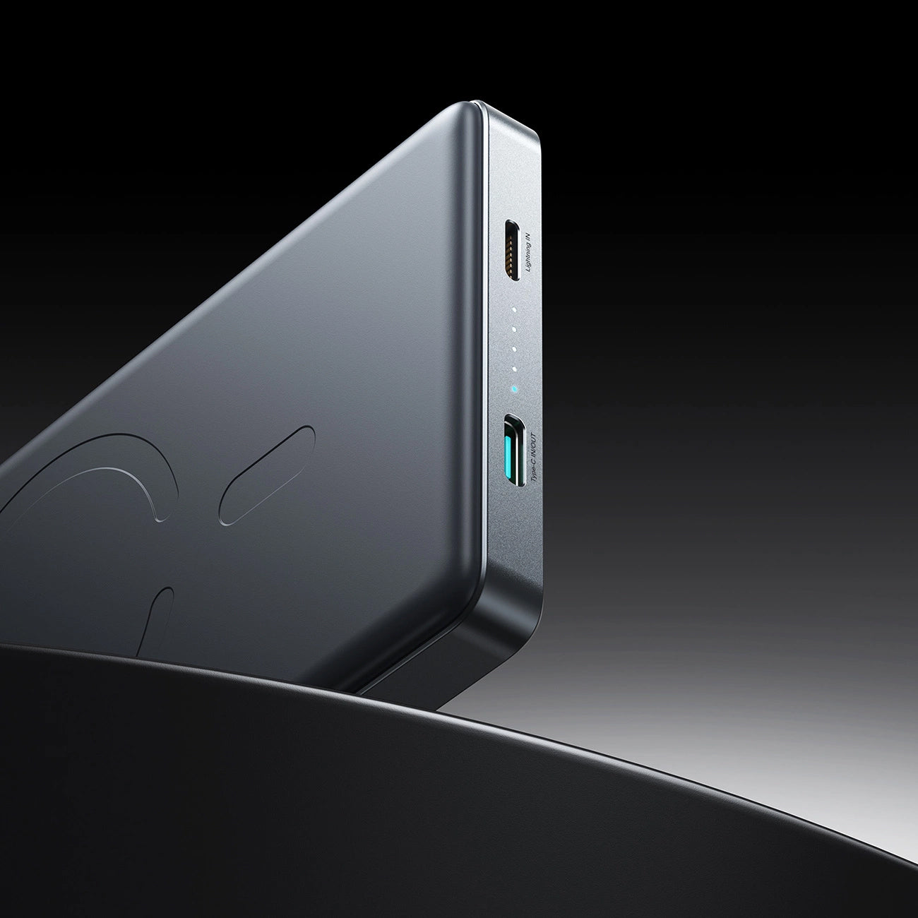 og den kraftige magnetiske modulen garanterer en sikker tilkobling med telefonen. LED-indikatorene letter overvåkingen av energinivået,