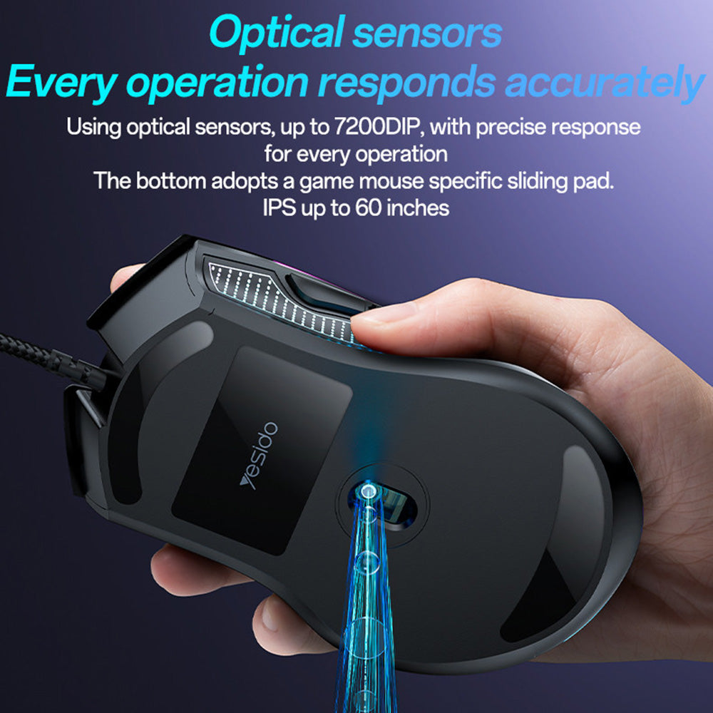 Den kablede musen fra Yesido er det ideelle valget for spillere som setter pris på både presisjon og komfort. Takket være det ergonomiske designet, kan du bruke den over lengre perioder uten å føle tretthet eller håndspenning.