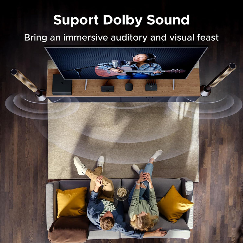 • 3-i-1-bryteren tillater rask veksling mellom flere enheter ved å bruke den integrerte knappen eller den medfølgende fjernkontrollen.