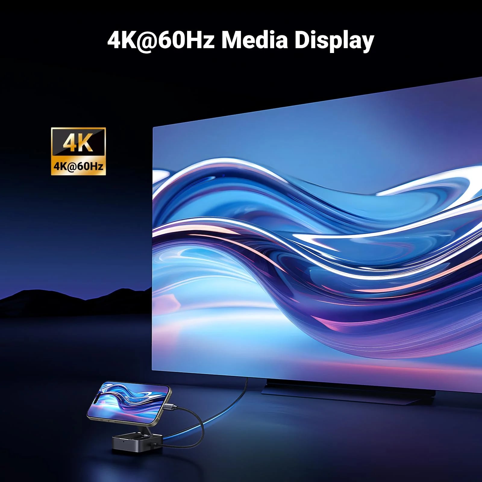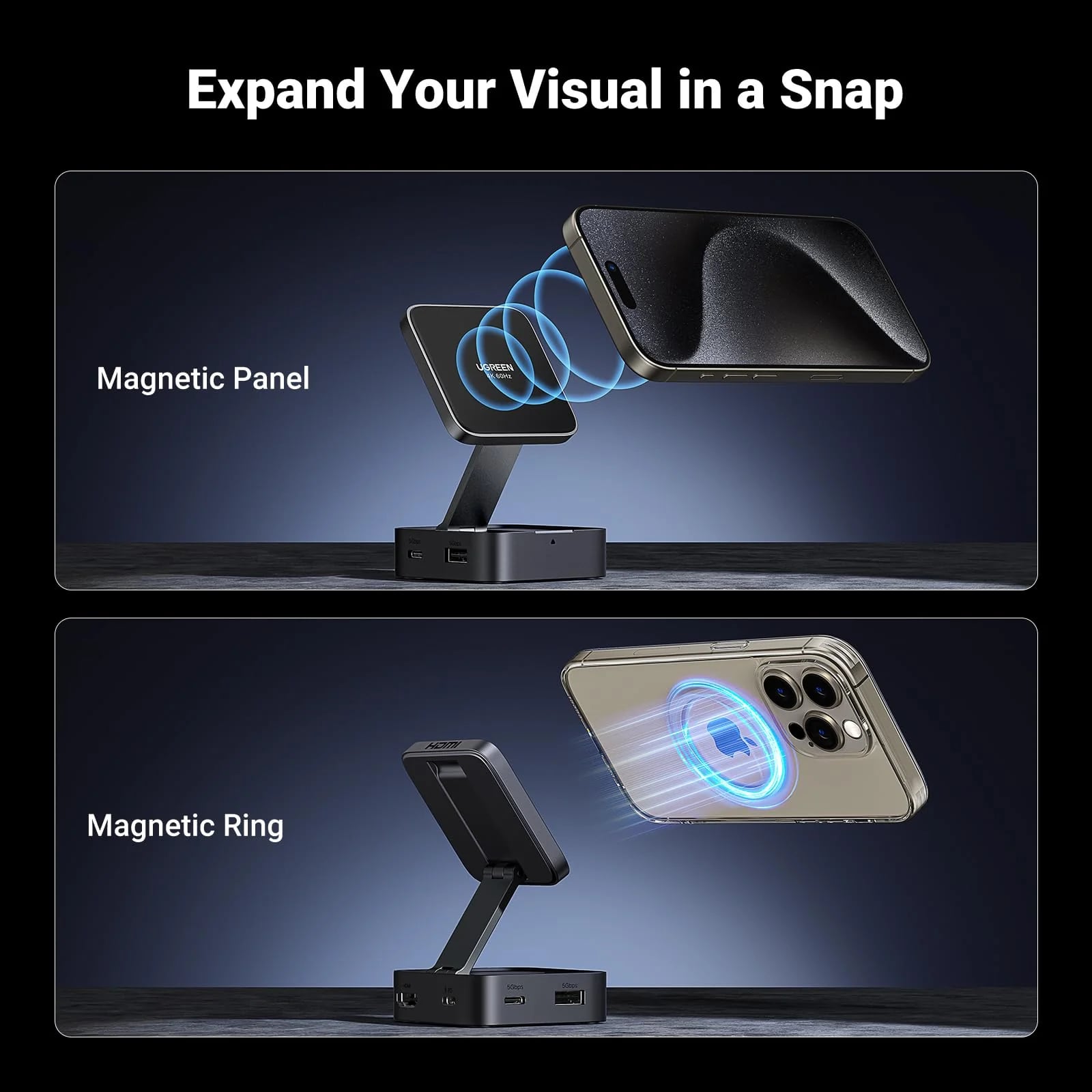 Utrustet med et kraftig 9N magnetisk system og en dedikert magnetisk ring, fester hub-en seg fast og sikkert til kompatible enheter,