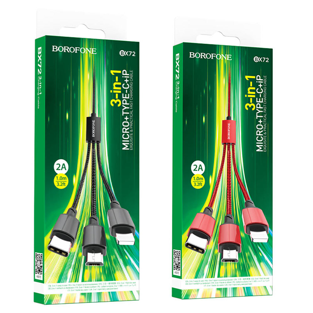 Borofone BX72 er det ideelle 3-i-1-kabelen for brukere som har flere enheter og ønsker en enkel og effektiv løsning. Utstyrt med tre kontakter - USB-C,