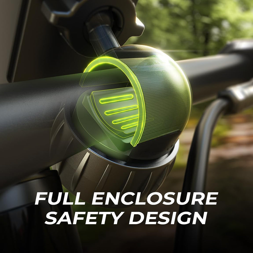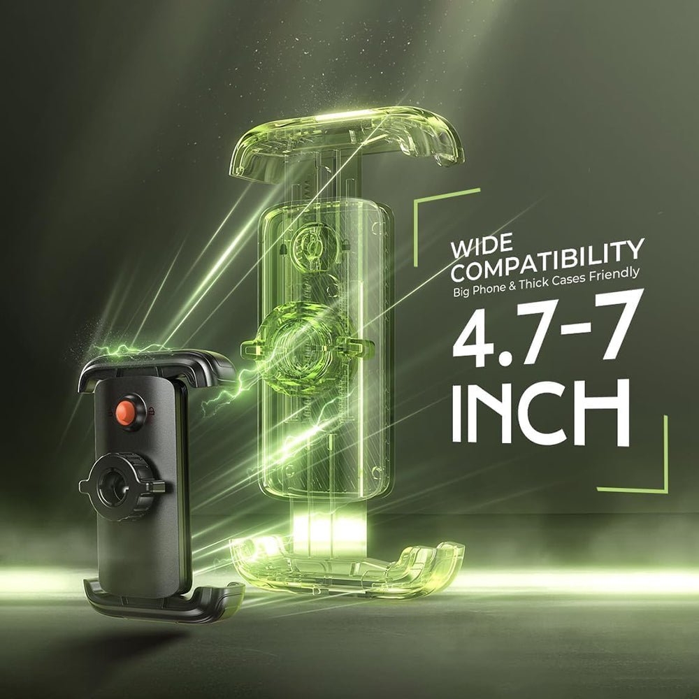Denne holderen sikrer en ultrastabil feste selv på ujevnt terreng eller ved høye hastigheter. Låsemekanismen eliminerer risikoen for at telefonen sklir eller faller ut.