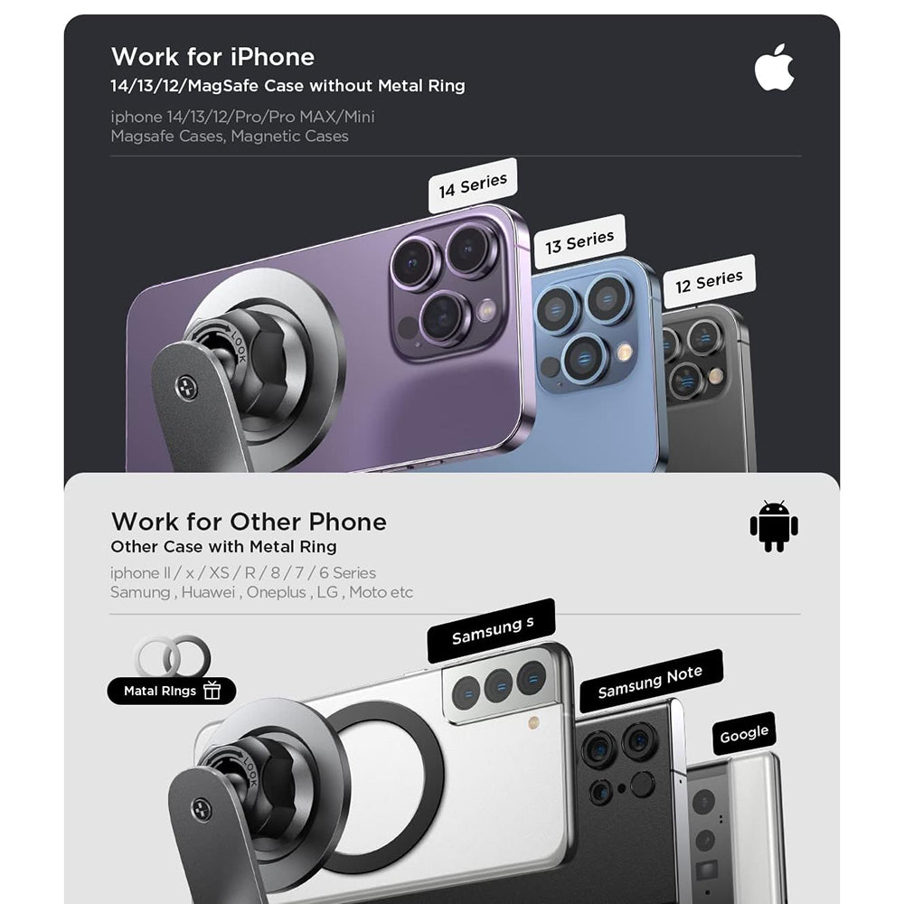 Kompatibilitet: iPhone (MagSafe), telefoner med magnetisk ring.