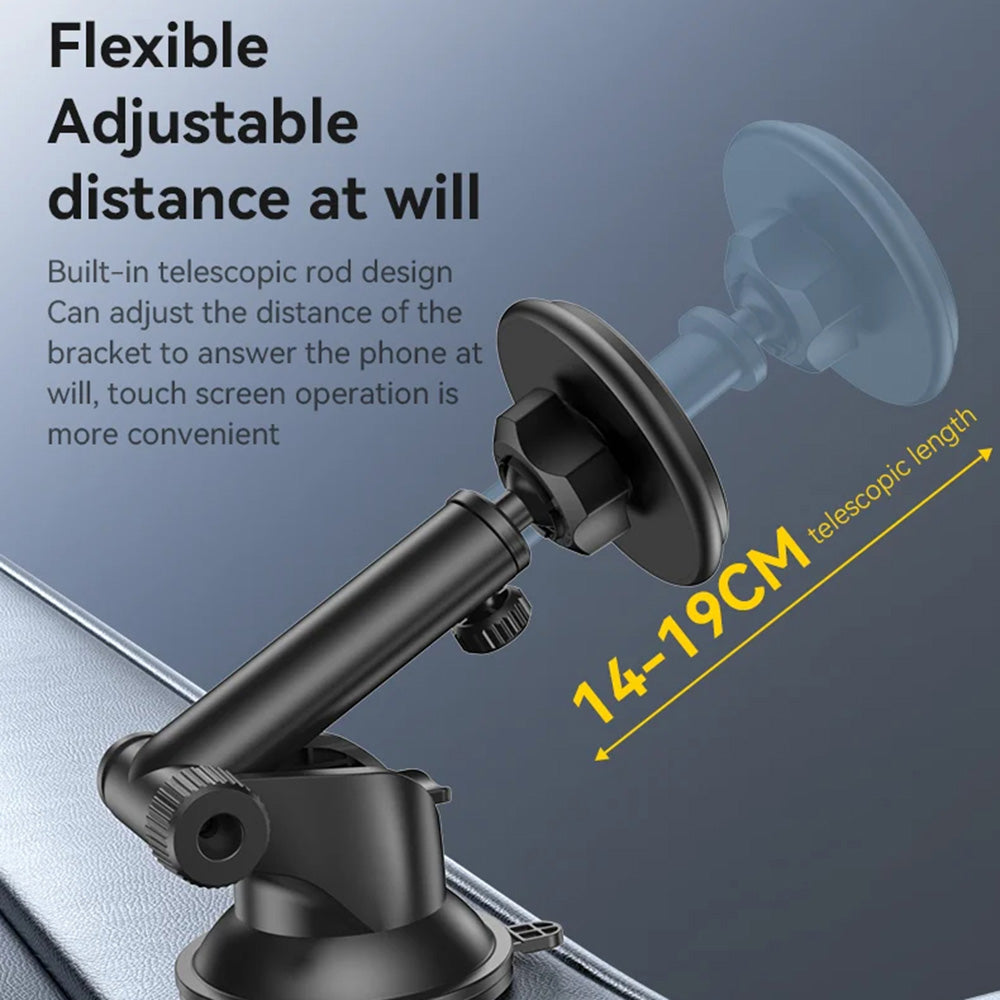 Med et avansert magnetisk system og en uttrekkbar arm med sugekopp, tilbyr denne holderen utmerket festing og en optimal synsvinkel i enhver situasjon.