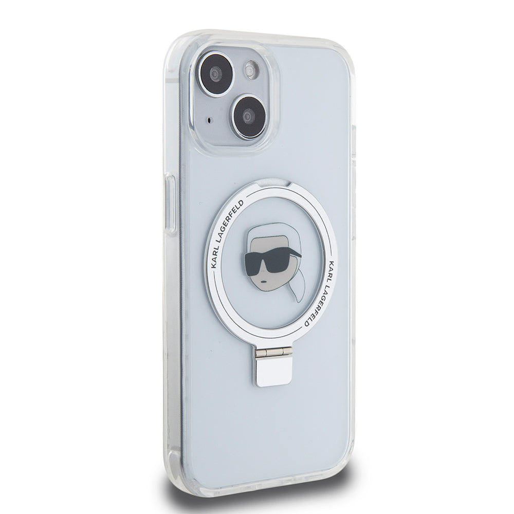 Ønsker du et deksel med støtte for telefonen? Det nye Karl Lagerfeld-dekselet har en metallring som kan brukes som støtte for enheten din.