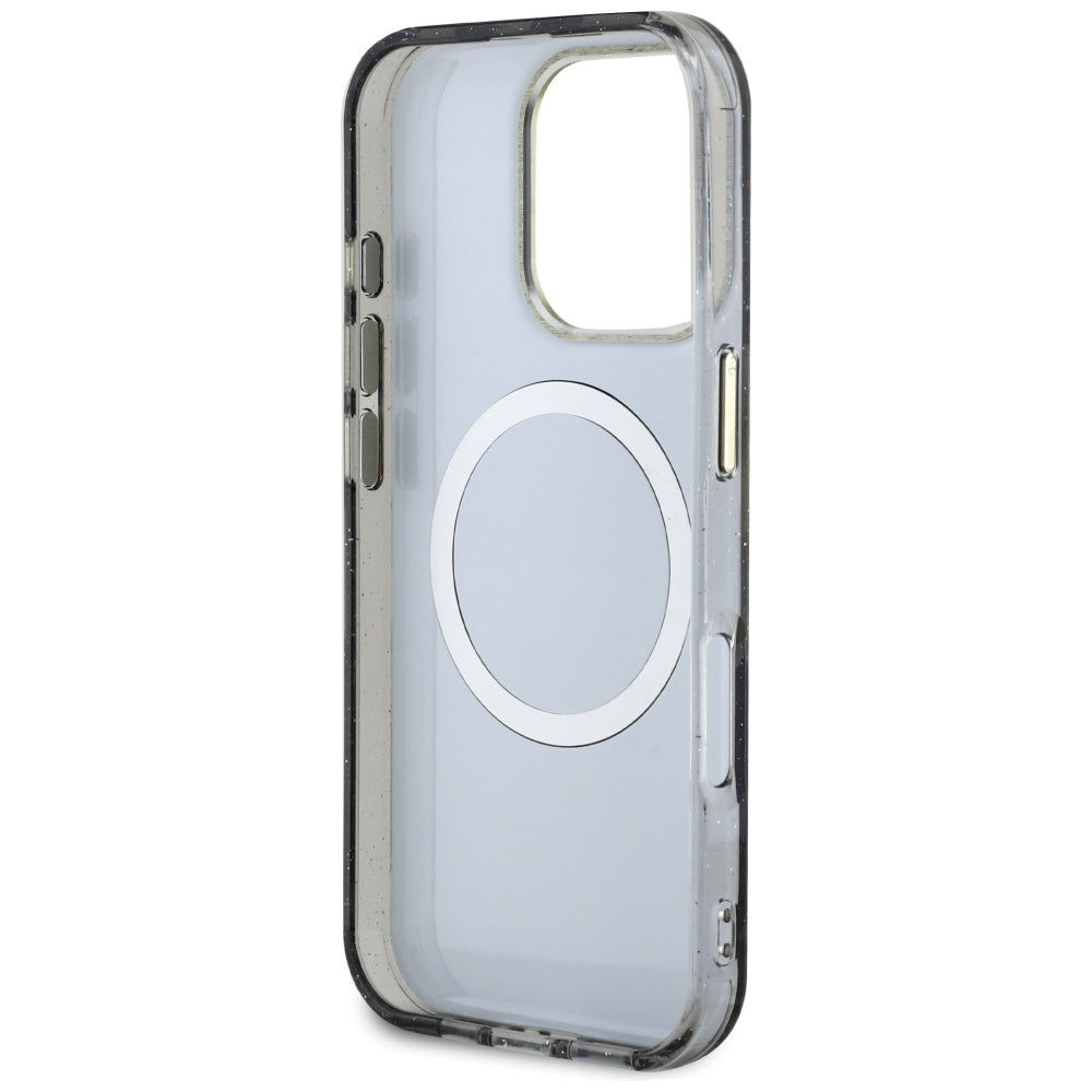 MagSafe-deksel for Apple iPhone 16 Pro, Guess, IML Metal Glitter Flowers Triangle, Svart