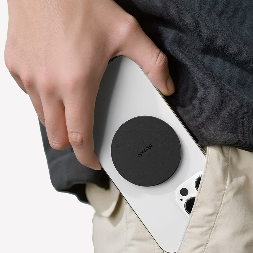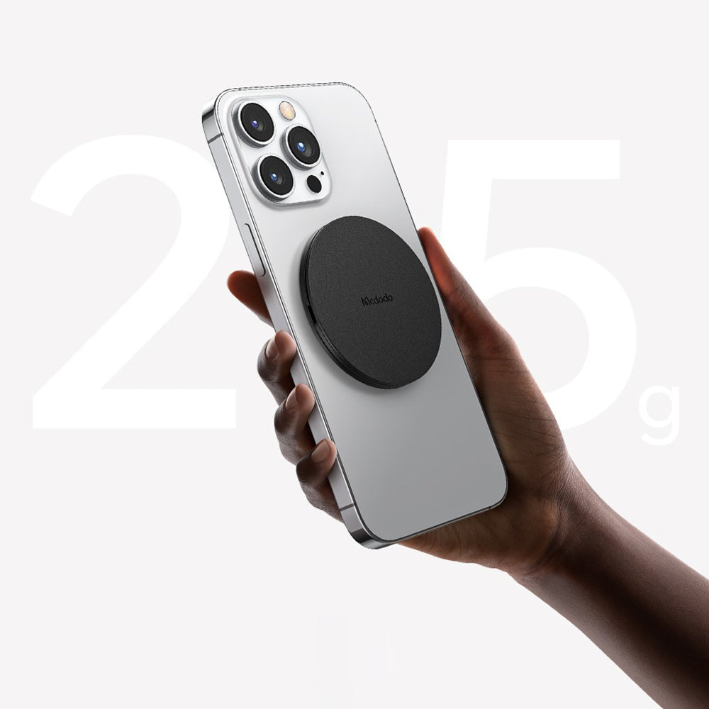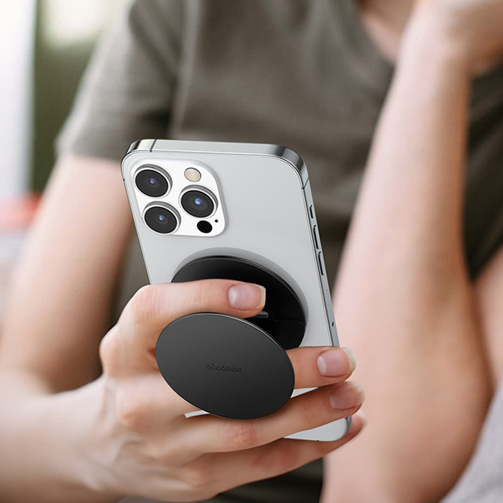 Magnetisk støtte som fester seg perfekt til telefonen, uten å legge til volum eller ekstra vekt.