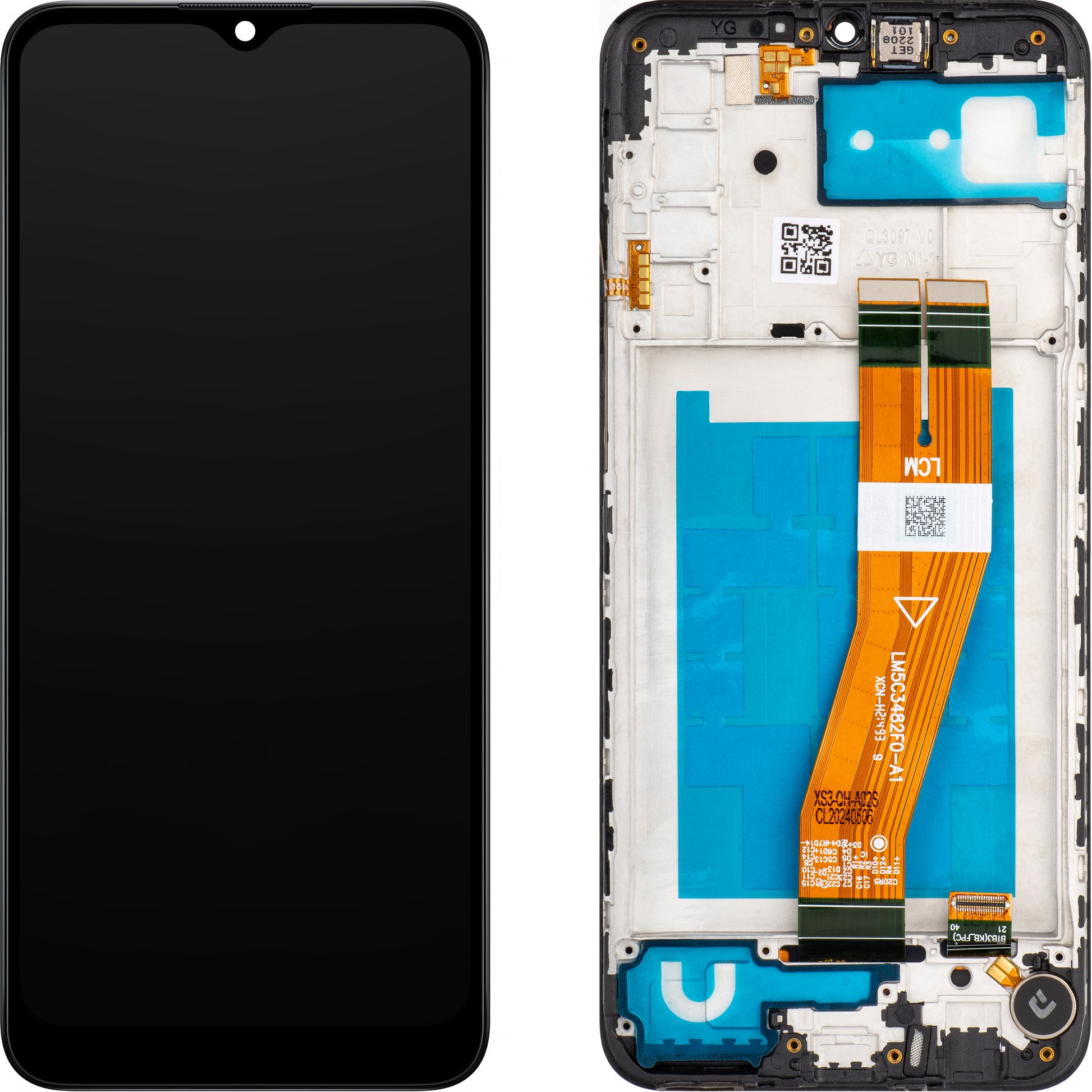 MP berøringsskjerm kompatibel med Samsung Galaxy A02s A025G, med ramme, svart