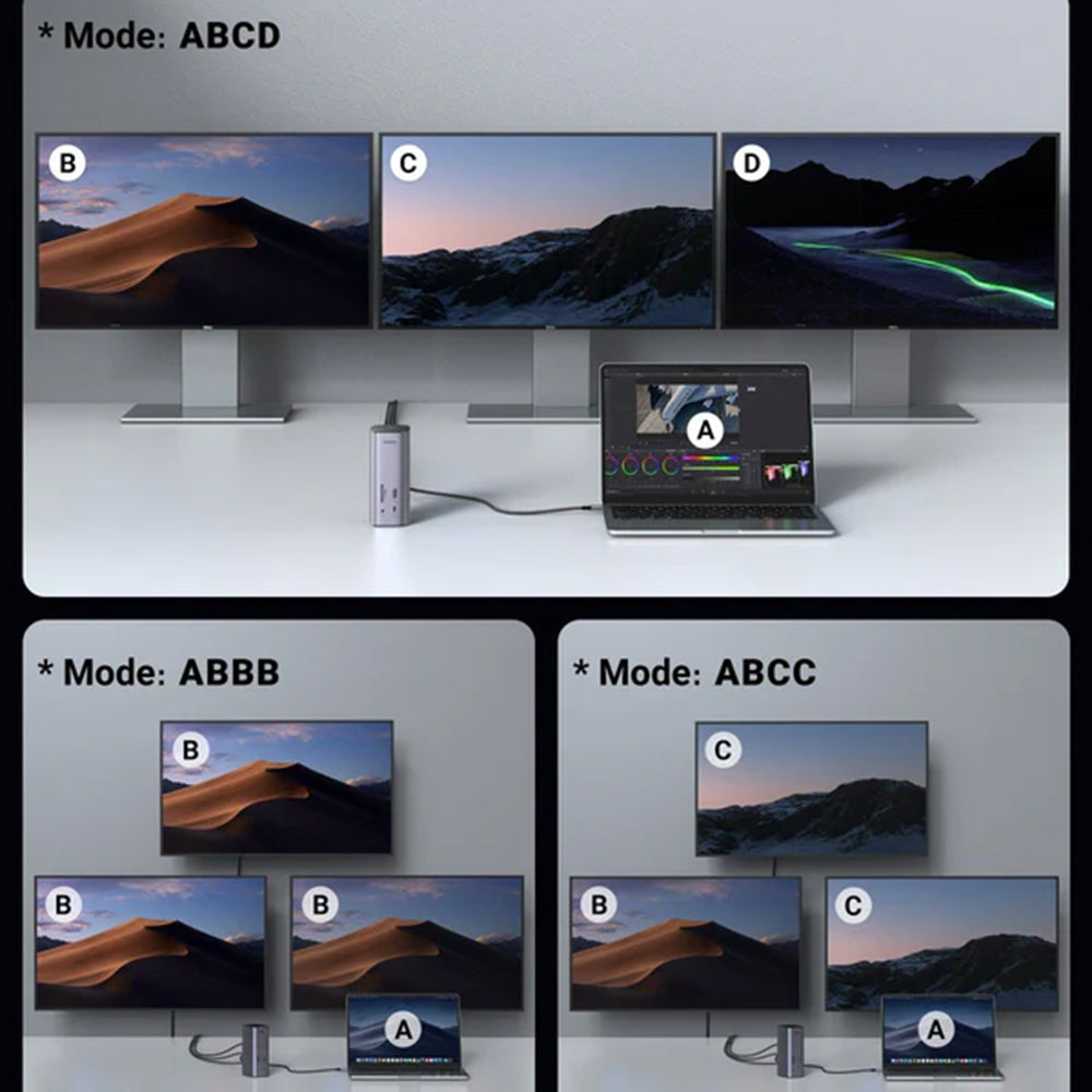 UGREEN Pro CM555-huben gjør enhver bærbar datamaskin om til en komplett arbeidsstasjon, og tilbyr 12 porter for video, data, nettverk og lading.