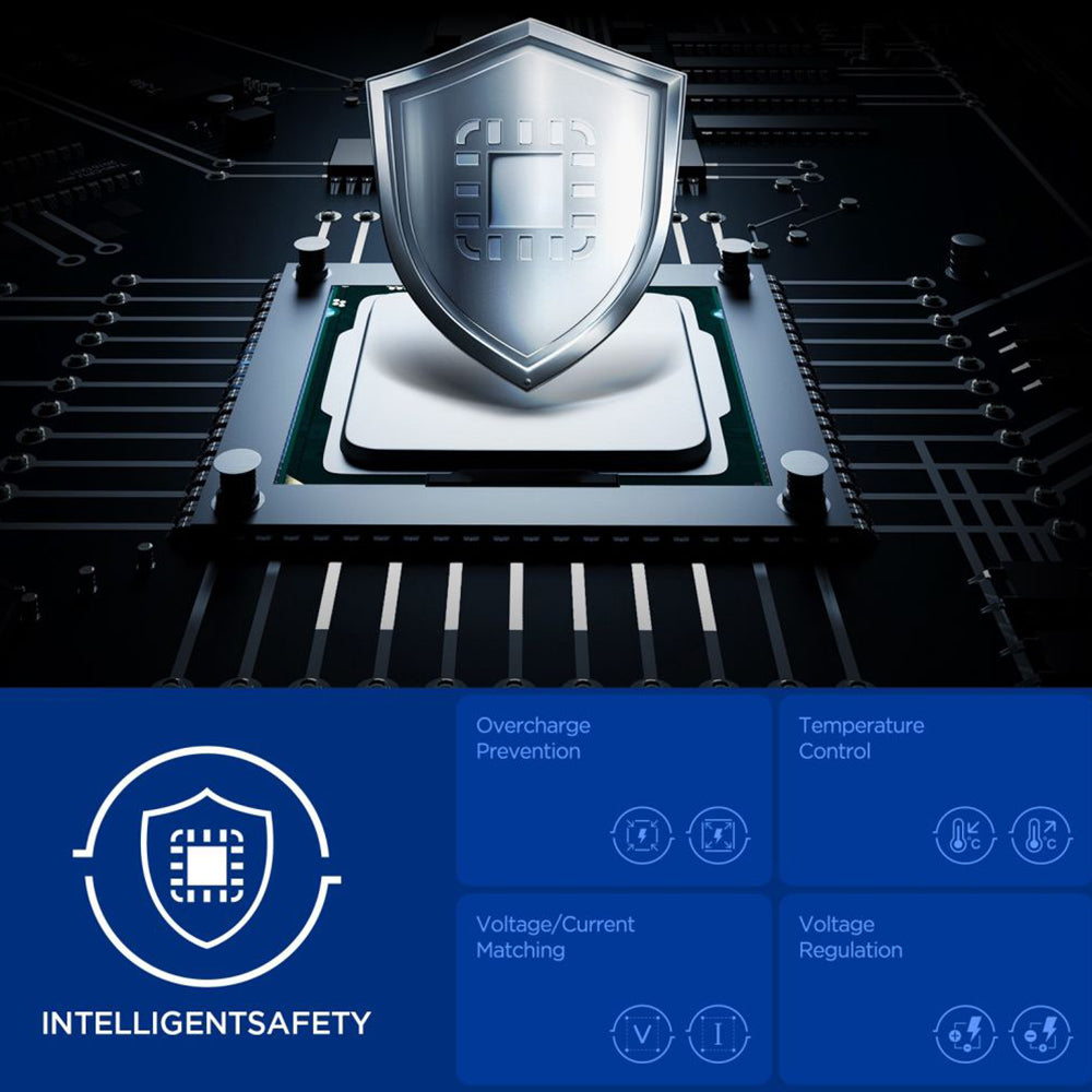 Med "Quantum Boost" gjenkjenner denne doble laderen den tilkoblede enheten og justerer automatisk ladeparametrene.