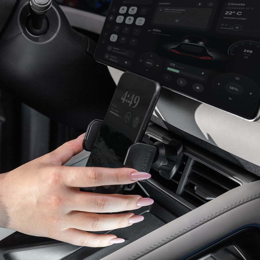 Glem bilholderne som reduserer synligheten i trafikken! Velg en premium bilholder med feste i ventilasjonsgrillen. Den er lett å montere og forblir stabil gjennom hele turen.