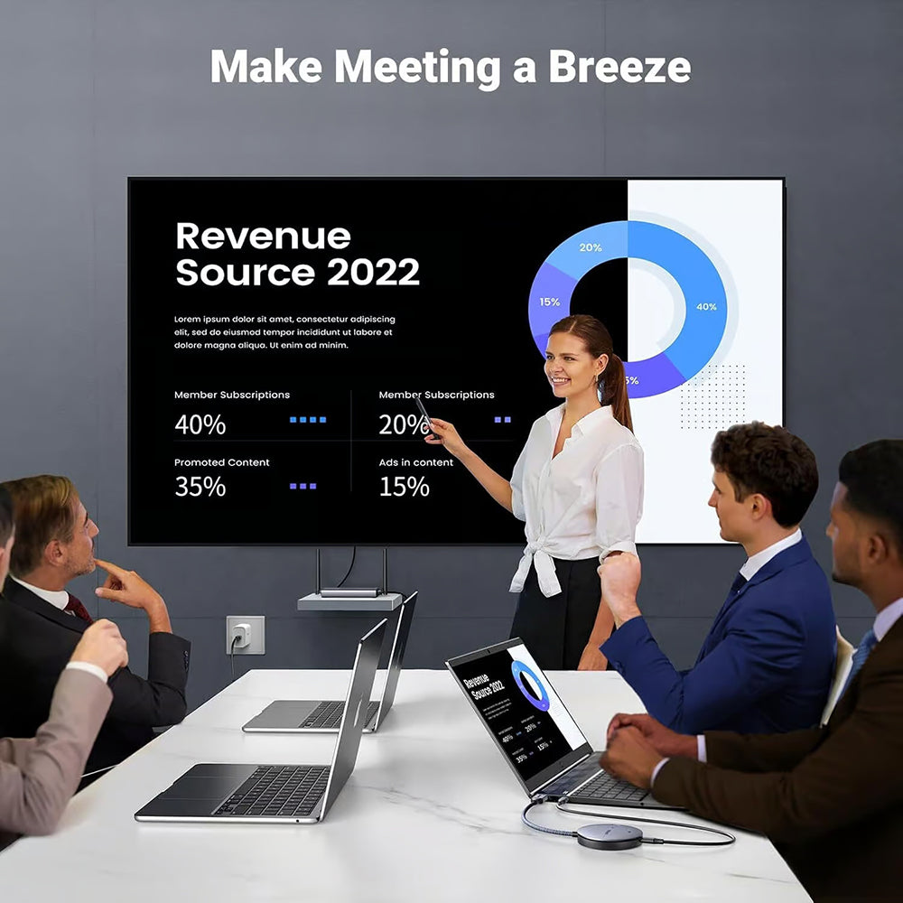 eller hjemmeunderholdning. UGREEN CM586-modellen tilbyr samtidig støtte for HDMI og VGA-utganger, noe som betyr utvidet kompatibilitet med forskjellige