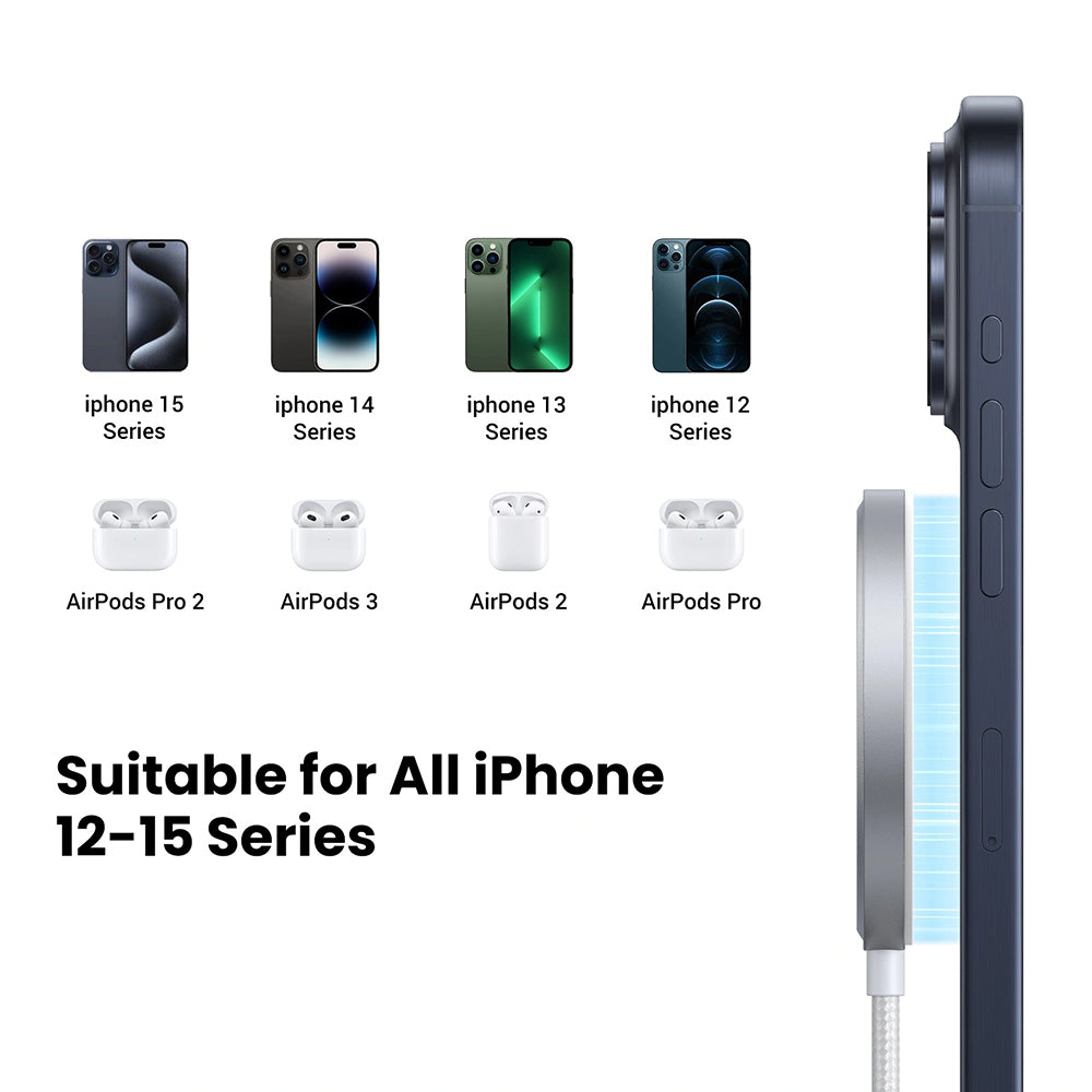 Kompakt og lett, UGREEN W703 er perfekt for både daglig bruk og reiser, og er kompatibel med iPhone 12 til iPhone 16,