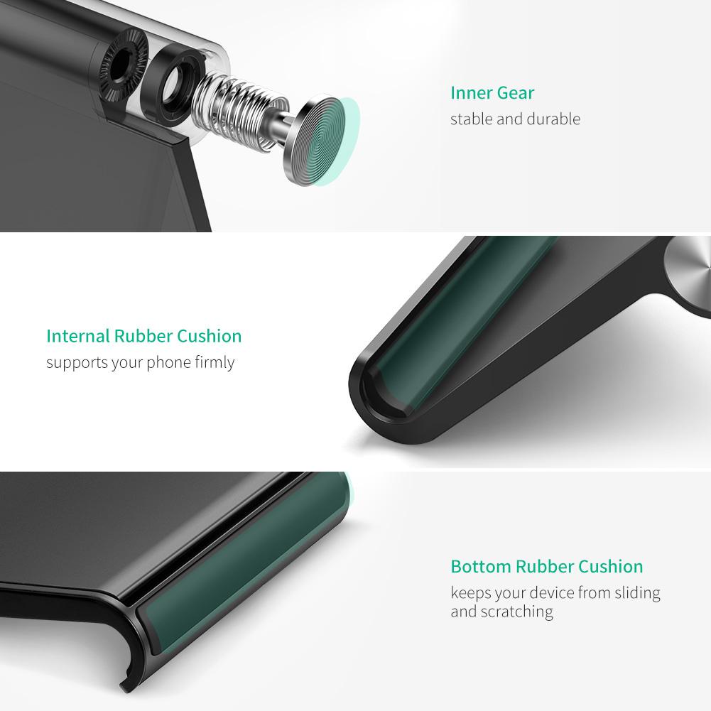 Nyt maksimal komfort og ergonomi med UGREEN LP106, en universell skrivebordsstøtte designet for smarttelefoner med en skjermstørrelse mellom 4 og 7.9 tommer.