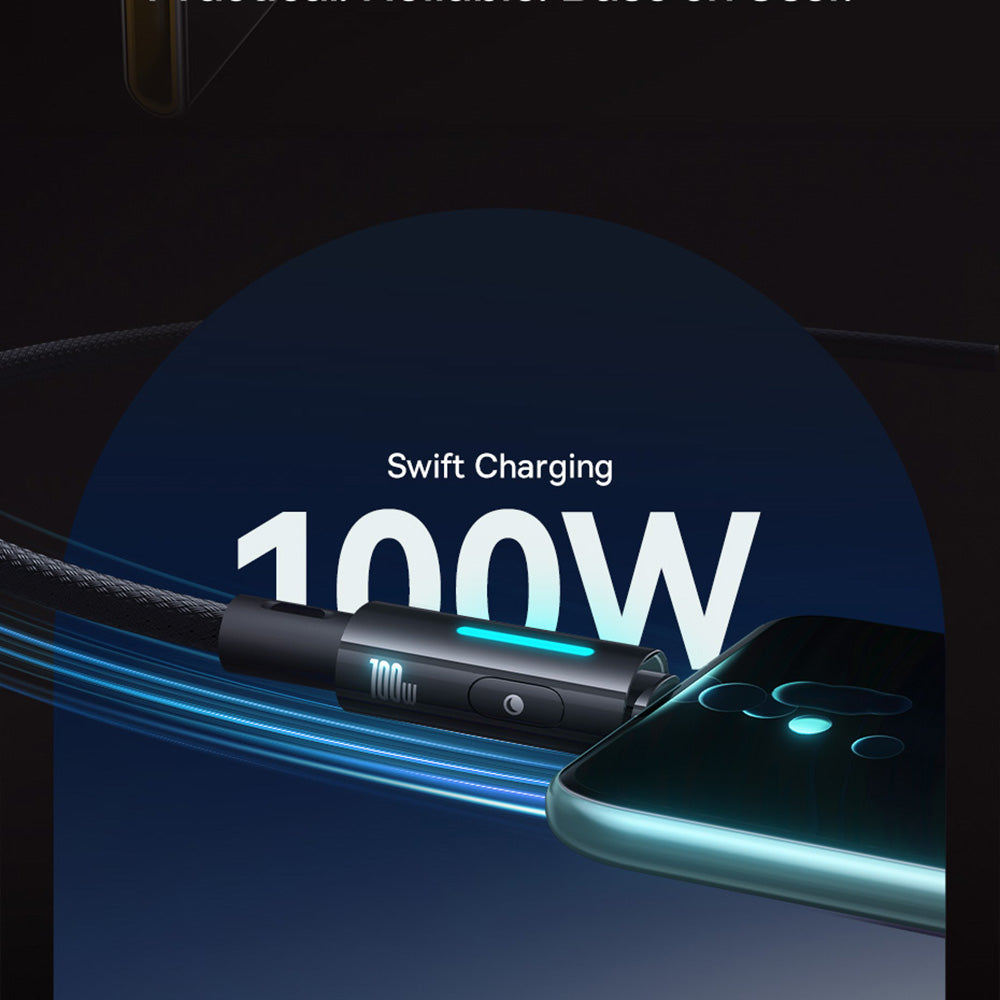 Baseus Lit Button Control-kabelen er den perfekte løsningen for ultrarask lading og effektiv dataoverføring. Med en effekt på 100W (20V/5A), lader den raskt telefonen din,
