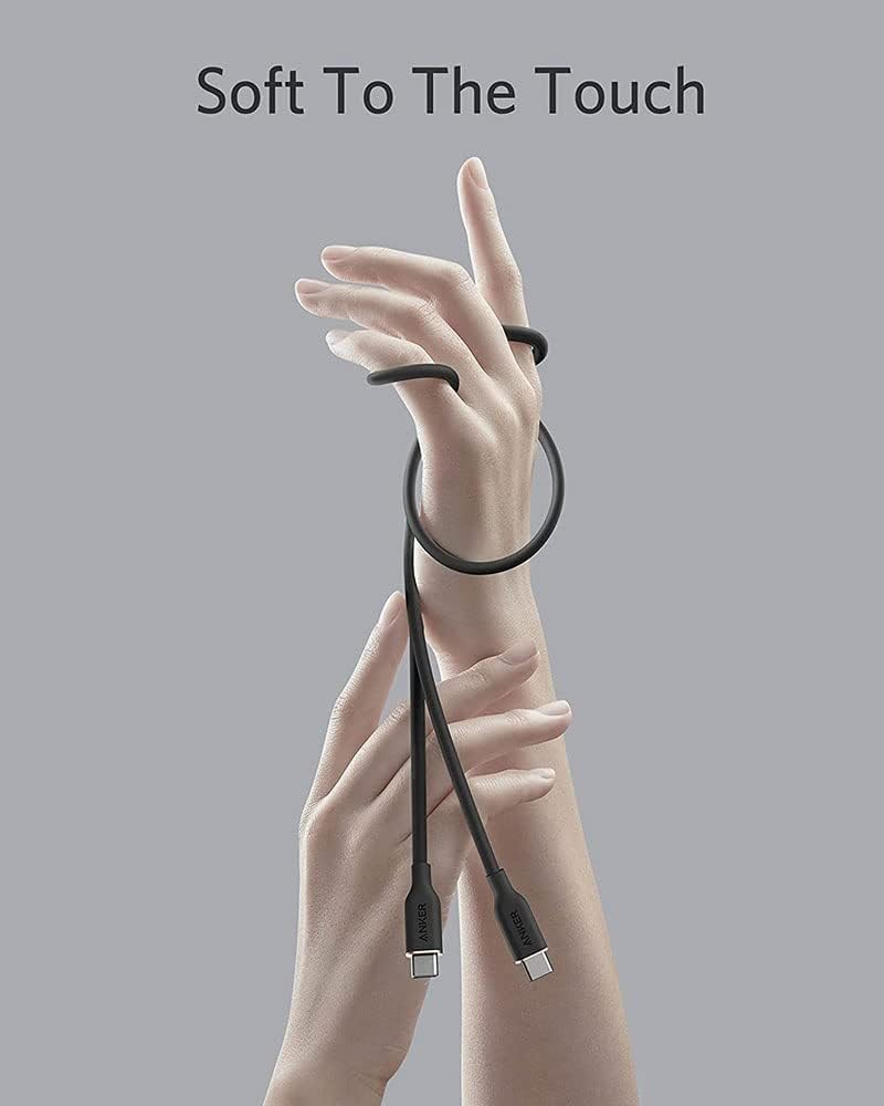 Anker PowerLine III USB-C til USB-C data- og ladekabelen imponerer med sin silikonfinish som er svært behagelig å ta på. Det myke materialet gir en