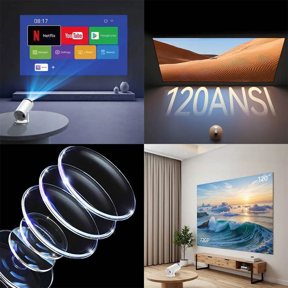Mini videoprojektoren Yesido har justerbar projeksjon på 180°, noe som sikrer riktig plassering av bildet avhengig av visningsflaten.