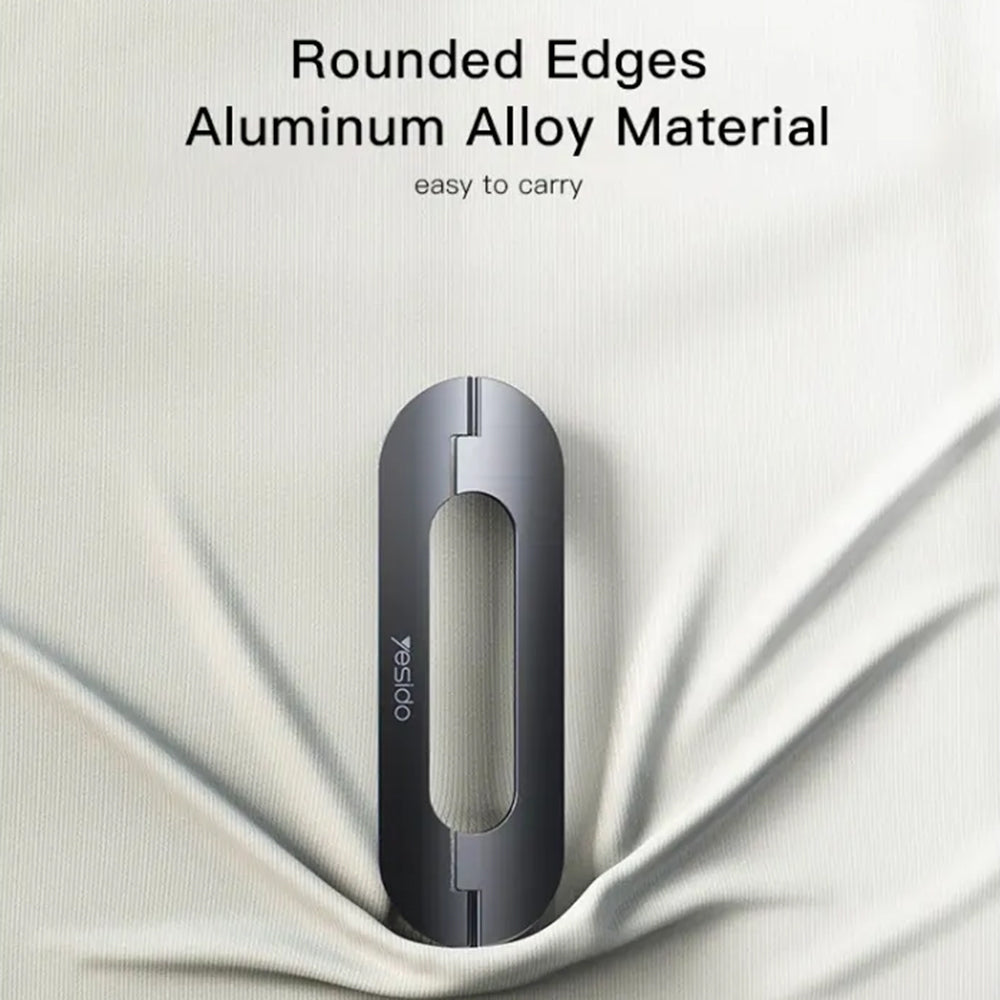• Yesido laptopstativet er et utmerket stativ, laget av sinklegering og aluminium, veldig holdbart og enkelt å bruke. Det kompakte designet fremhever de forlengede kantene for de som ønsker elegante tilbehør.